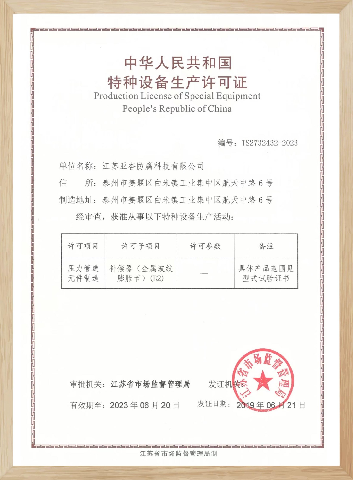 特種設(shè)備生產(chǎn)許可證